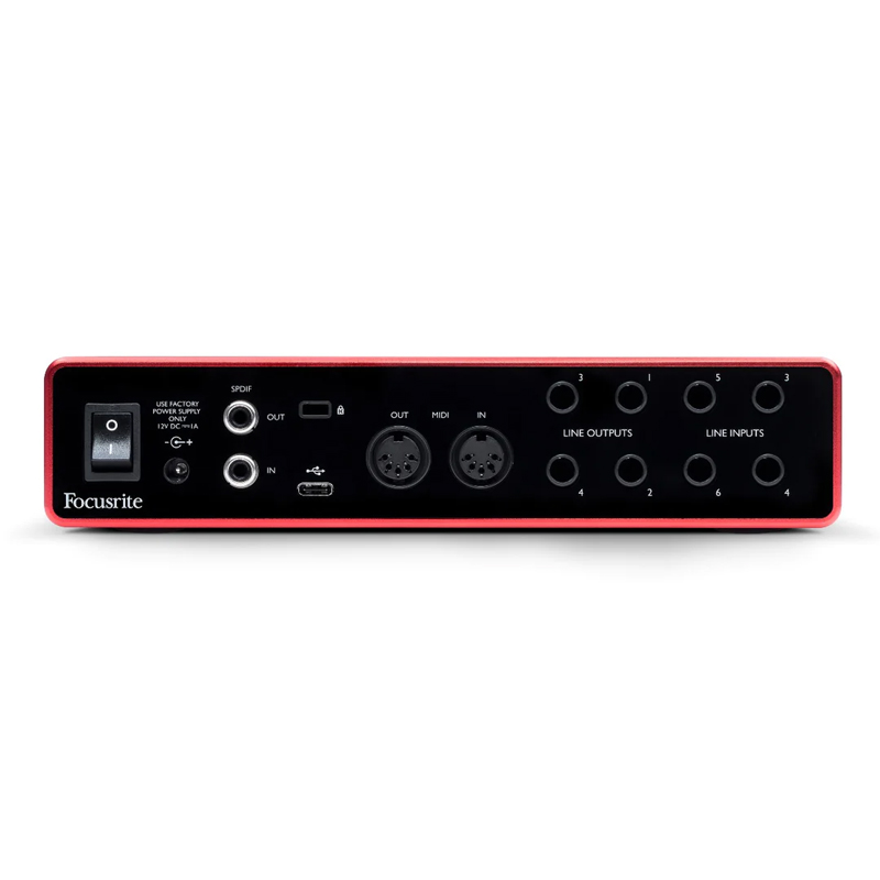 Focusrite Scarlett 8i6 is the compact studio solution you’ve been looking for, allowing you to keep all your hardware plugged in and ready to go: set up mics, guitars and synths to start creating as soon as inspiration strikes. With improved A-D and D-A conversion, your recordings and playback will sound clear and pronounced up to 24-bit/192kHz, white two independent high-fidelity headphone outputs with dedicated volume control enable flexible monitoring during recording and mixing.