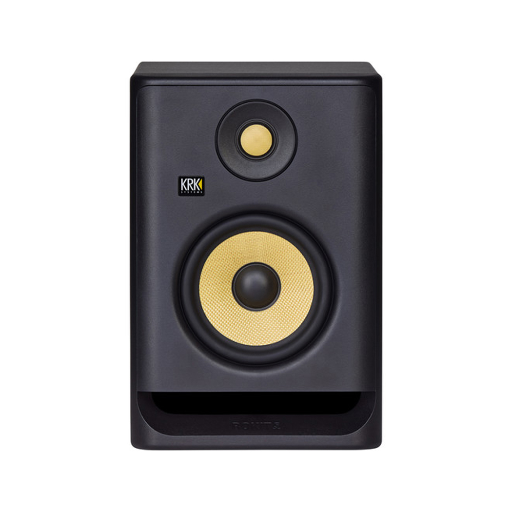 Musicians, audio engineers, and producers looking for a professional nearfield monitor with sonic integrity to combat listening fatigue will be impressed with the single, black KRK ROKIT 5 G4 , a scientifically designed speaker with a front-firing port that offers low-end extension, punch, and flexible room positioning, well suited for professional studio, broadcast TV, and mixing applications.The ROKIT 5 G4 is the latest model from KRK’s popular monitor series and has been reengineered from the ground up to offer updated features such as DSP-driven room tuning with 25 graphic EQ settings on an LCD combined with the included KRK app that helps minimize and correct problems in your acoustic environment. Matching drivers made with Kevlar ensure a balanced and clear listening experience. Other features include: Class-D 55W total output power, ISO-foam pads that decouple the speaker from the surface, and a built-in brickwall limiter to protect the system and offer wider dynamics. A power cord is included.